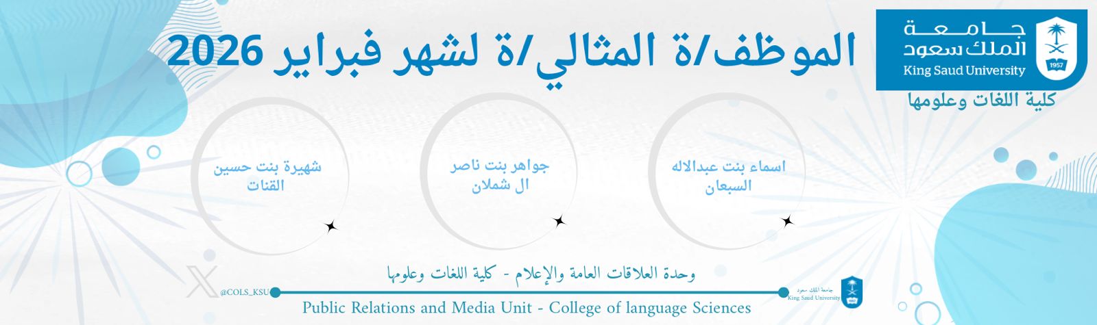 مشرفة الوحدةأ.نوال المهيزع0118058160NALMUHAZEI@KSU.EDU.SA