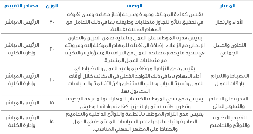 إرسال إيميل للرئيس المباشر وإدارة الكلية لتقييم الموظفين العمادة/الوكالة/القسم/الإدارة/الوحدة،اعتباراً من تاريخ 25 من كل شهر ميلادي ولمدة خمسة أيام.
